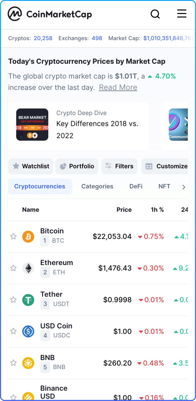 Example: Coindesk, CoinMarketCap